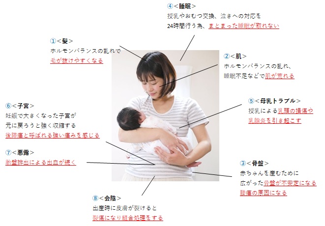 産後の身体は全治1~2ヵ月の交通事故にあったような状態です。
